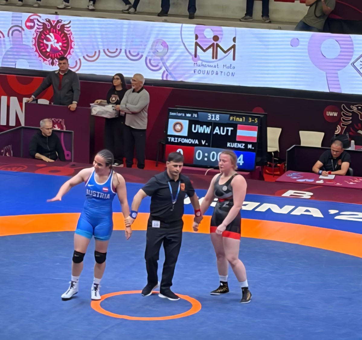 | In der Gewichtsklasse bis 76 kg startete die Polizeisportlerin vom RSC Inzing mit einem 5:0-Schultersieg gegen die belarussische EM-Dritte des Vorjahres Anastasiya Zimiankova ideal ins Turnier. Im Viertelfinale konnte sie die mehrfache U20-/U23-Europameisterin Elmira Yasin (TUR) ebenso mit 10:0 auf Schulter besiegen. Im Halbfinale musste sie sich nach hartem Kampf der Titelverteidigerin Anastasiya Alpyeyeva (UKR) mit 0:6 Punkten geschlagen geben. Morgen ringt die Tirolerin im kleinen Finale um Bronze gegen die Russin Valeriia Trifonova (UWW), der Kampf ist im UWW-Livestream ab ca. 19:30 zu sehen.
