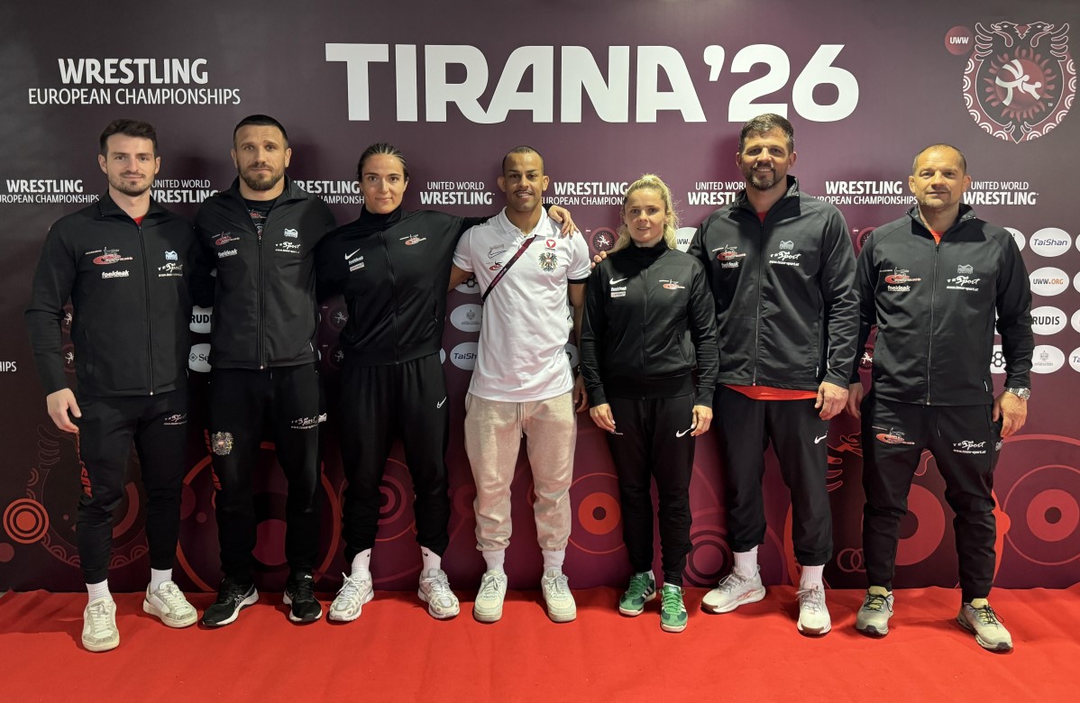 ![]() Österr. Damen- und Griechisch-römisch-Team mit den Betreuern Zuvor fanden die Griechisch-römisch-Wettbewerbe statt – nach der verletzungsbedingten Absage von Daniel Gastl (RSC Inzing) ging sein Vereinskollege Aker Schmid für Österreich an den Start. In der stark besetzten Gewichtsklasse bis 67 kg hatte er gegen den Schweizer Andreas Vetsch bei einer unglücklichen 3:3-Punkteniederlage das Nachsehen. Da dieser das Finale nicht erreichte, blieb dem Heeressportler vom Leistungszentrum Rif/Wals der Weg über die Hoffnungsrunde verwehrt. Im Endklassement belegte Schmid den 15. Platz. Obwohl das Turnier nicht die zu erwartenden Ergebnisse brachte, das Team hat sich unter Bundestrainer Amer Hrustanovic enorm weiterentwickelt, was die jüngsten Erfolge bei den Weltcupturnieren widerspiegeln.
