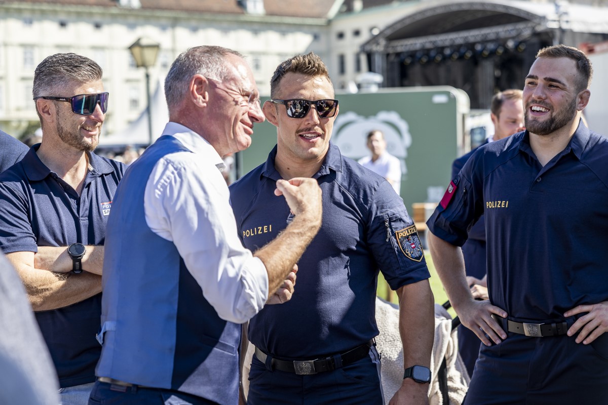 Auch Sport-Staatssekretärin MMag.a Michaela Schmidt begrüßte das Team von „Justiz Athleta“: „Sportliche Spitzenleistungen brauchen nicht nur Ehrgeiz und Training, sondern auch die nötigen Rahmenbedingungen. Die Justizwache bietet den Sportler:innen eine sichere und attraktive berufliche Perspektive – dementsprechend groß war auch das Interesse der Berwerber:innen für die Ausbildungslehrgänge.“